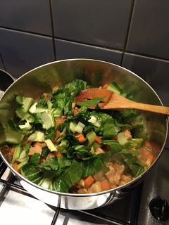 In elk geval: datzelfde weekend besloot mijn man om een gerechtje van Quyên uit te proberen. Had hij gevonden toen hij op zoek ging naar een recept voor de rammenas en de paksoi uit ons groentepakket.