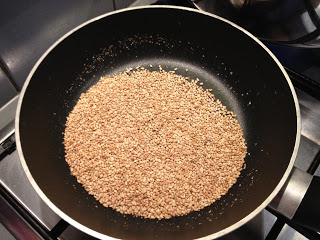 Snij de tofu in dobbelsteentjes en marineer ze in de sojasaus. Ook de kipfilet snij je in blokjes, en de wortelen, paksoi, rammenas en lente-uitjes snij je in fijne stukjes. We bakten eerste de tofu en de kip even aan, en voegden daarna de bouillon en de groenten toe (Quyên houdt kip, bouillon en groenten apart, waardoor het geheel er eerlijk gezegd wel aantrekkelijker uitziet). Na een kwartiertje voeg je de kokosmelk toe, en terwijl alles nog even suddert rooster je de sesamzaadjes: