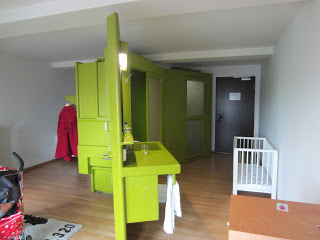 Ik besloot meteen een van hun tips te volgen, toen we een tijdje terug een weekendje Amsterdam boekten. Het was onze eerste ‘vakantie’ met Kato. We reserveerden het Lloyd hotel dat we via Dingenzoekers ontdekten. En het viel supergoed mee. We hadden een kamer met een felgroene polyester badkamer van de Nederlandse designer Joep Van Lieshout als een soort kamerscherm in het midden. Kato vond het super om zo midden in de kamer in een groot groen bad te zitten. Alleen slapen lukte iets minder goed in die vreemde kamer… helaas ;-(.