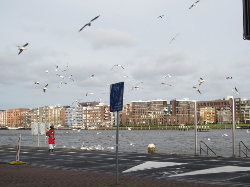 – De wandeling in de buurt van ons hotel, het Oostelijk Havengebied, met knappe staaltjes van moderne architectuur.