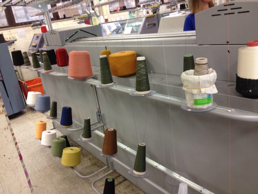 Emilie en ik mochten enkele weken geleden in Zottegem gaan kijken hoe en waar dat zal gebeuren. We waren onder de indruk van de vele breimachines en garens, het arbeidsintensieve productieproces – in één trui kruipt zo’n 100 minuten breiwerk, uitgezonderd wassen, drogen en assembleren – én de ondernemingszin van Trees. “Ik zie het groot”, vertrouwde ze ons toe, “uiteindelijk wil ik KNIT13 wereldwijd verkopen, tot in New York.” Daar moesten wij, bescheiden freelancers, toch even van slikken 😉